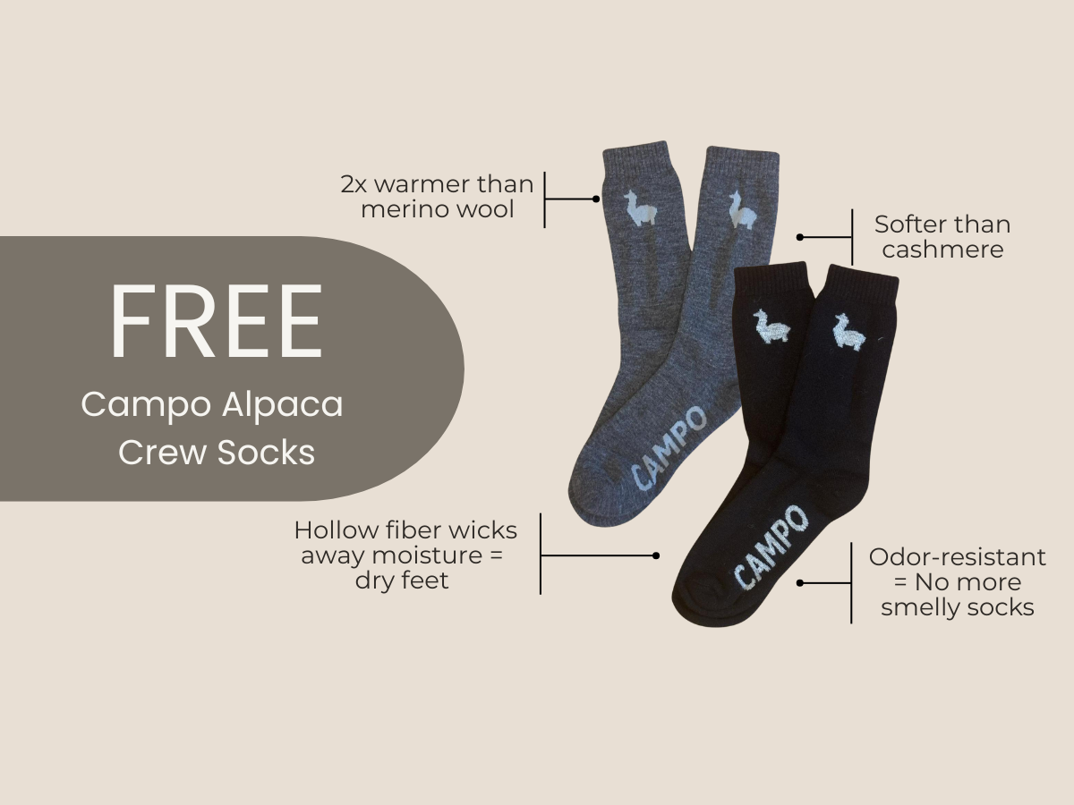Spend $75 and get a pair of our new Campo Crew Alpaca Socks