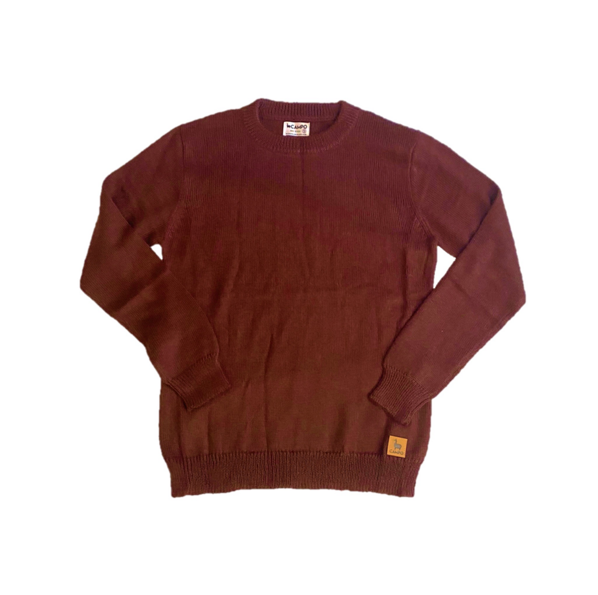 This new maroon crew neck sweater is so soft and cozy, thanks to the alpaca fiber it's made from. Alpaca is hypoallergenic and thermo-regulating so there's no itch and it will keep you at the perfect temperature. The color and fit are unisex, so it looks great on both men and women.