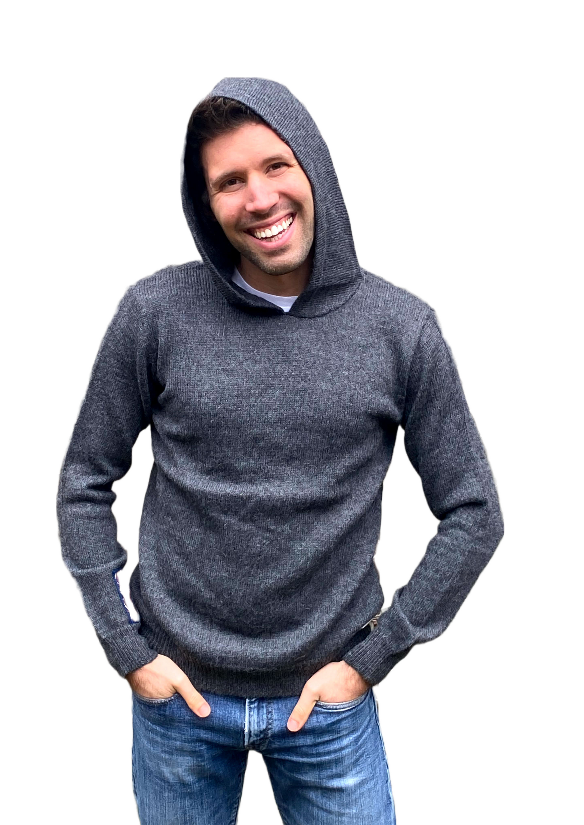 This new dark gray hoodie is so soft and cozy, thanks to the alpaca fiber it's made from. Alpaca is hypoallergenic and thermo-regulating so there's no itch and it will keep you at the perfect temperature. The color and fit are unisex, so it looks great on both men and women. These hoodies are just enough oversized to keep you warm and stylish wherever you go!