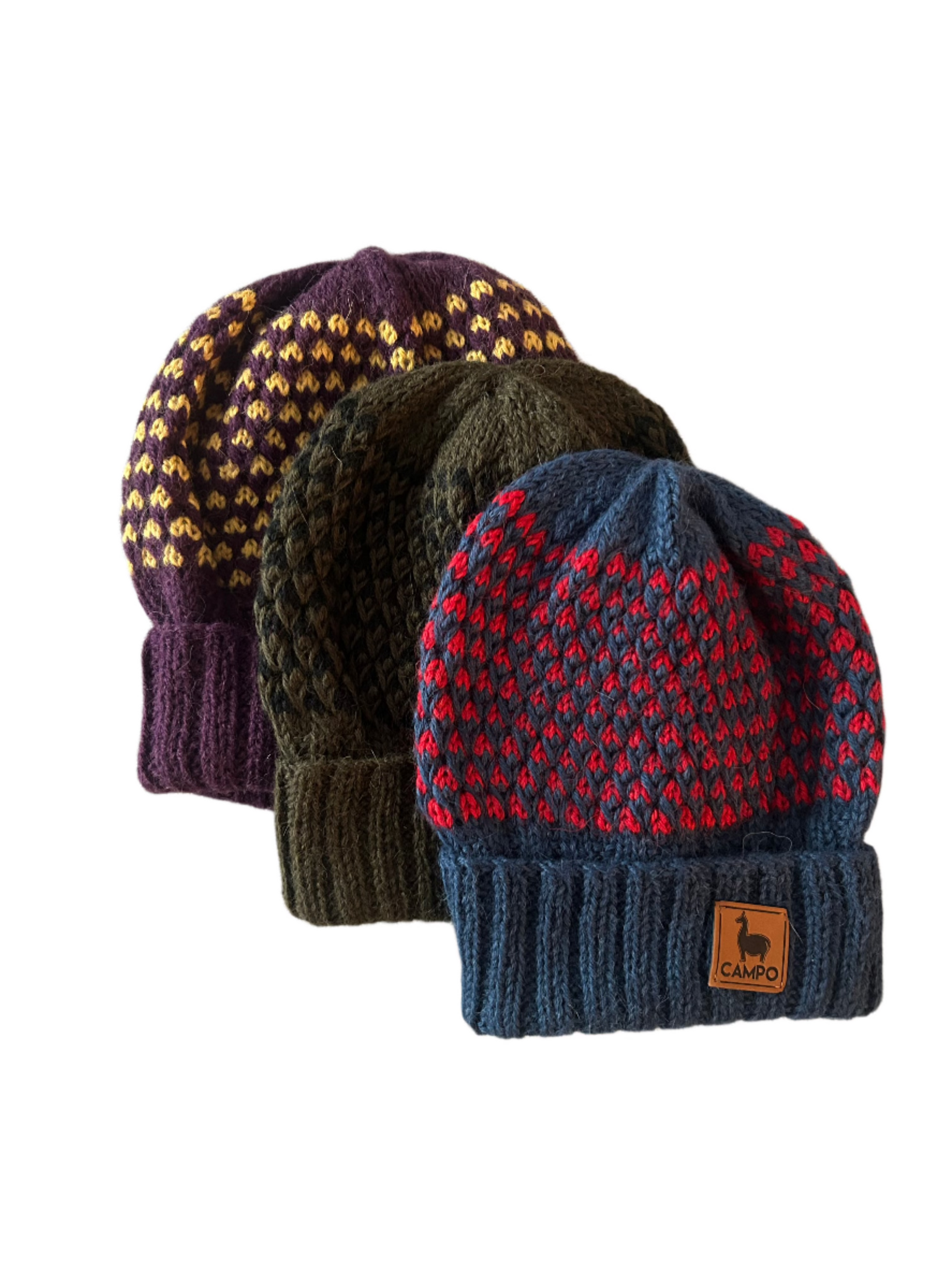 Our beanies are hand-knit by amazing women in small villages outside of Arequipa, Peru.