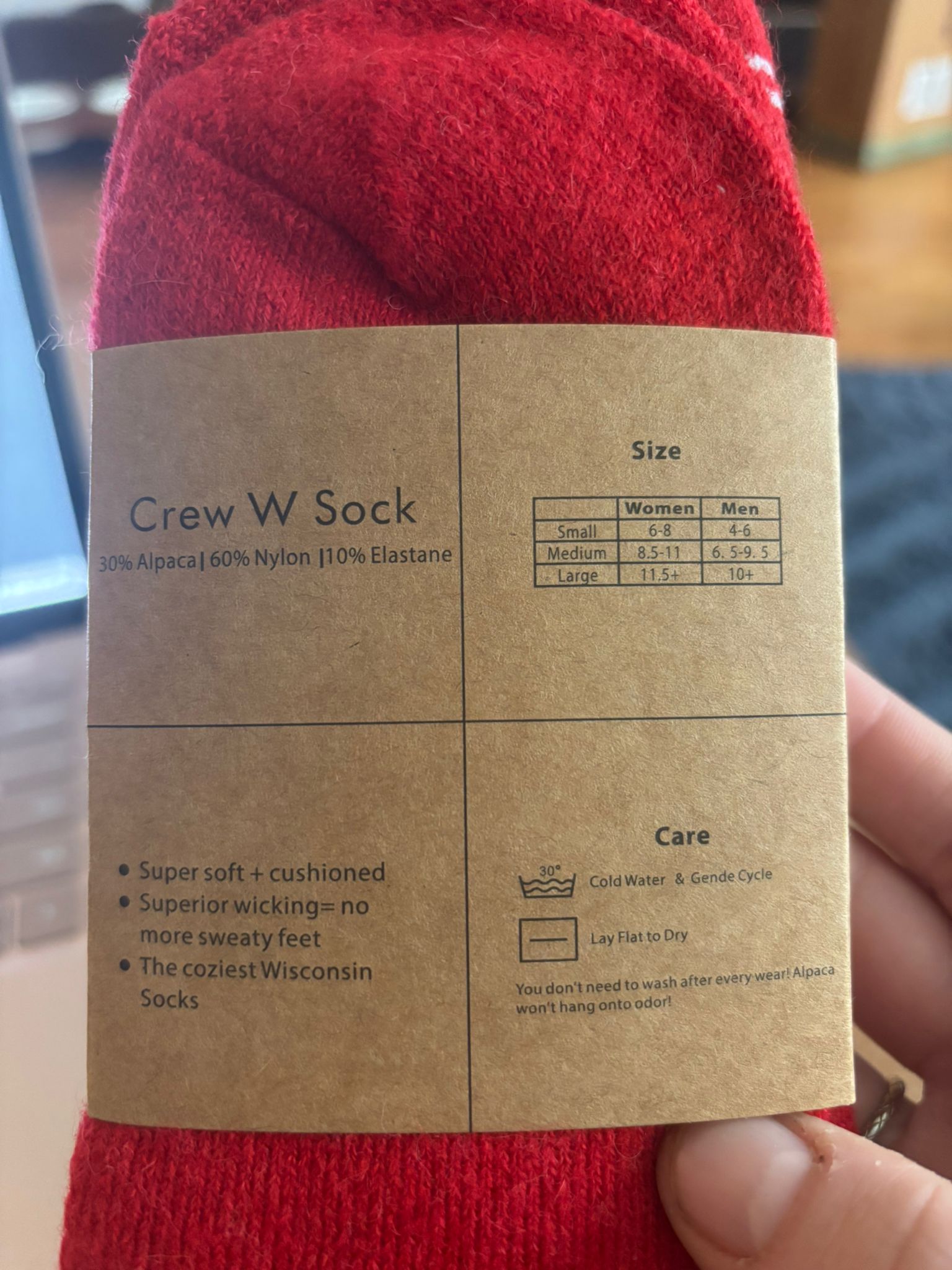 We finally have them! Red W Crew Alpaca Socks! These socks are crazy soft, have great cushion - you'll feel like you're walking on clouds. Perfect sock for game days and every day. These alpaca socks are great for all seasons and will keep your feet dry and perfect temperature.